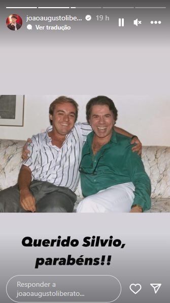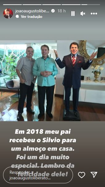 Por meio dos stories no Instagram, João Augusto Liberato compartilhou as imagens e celebrou o aniversário de 93 anos de Silvio Santos: “Querido Silvio, parabéns!“, escreveu ele, na legenda de uma das fotos. “Em 2018 meu pai recebeu o Silvio para um almoço em casa. Foi um dia muito especial. Lembro da felicidade dele“, confessou João, exibindo um dos últimos encontros do seu pai com Senor Abravanel, onde Gugu presenteou o ex-patrão com uma estatua dele, em tamanho real.