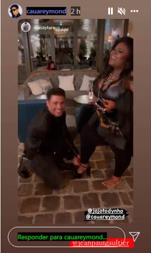 Cauã também fez questão de compartilhar o momento em seu perfil no Instagram. “Eu e ela no @jeanpaulgaultier”, escreveu o ator. Nos comentários, a cantora brincou: “Morri e ressucitei, você é tudoooo”, escreveu. Nos stories, o galã ainda dá uma de príncipe encantado e ajuda a cantora ajeitando a sandália, em momento registrado por Danilo Faro.