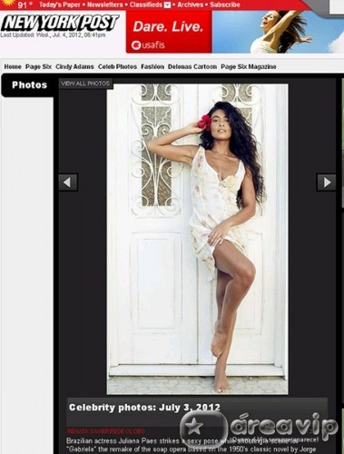 Uma foto da atriz Juliana Paes, 33, estampa a edição virtual do “New York Post”.