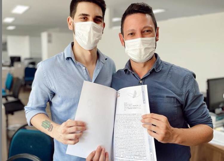 Em seu perfil no Instagram, Dondossola compartilhou com os seguidores o “momento especial”. Ele mostrou uma sequência de fotos do momento em que oficializou a união. De máscara, os dois aparecem mostrando o registro da união.