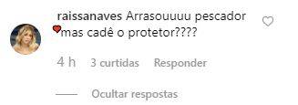“Arrasouuuu pescador, mas cadê o protetor????”, questionou Raíssa.