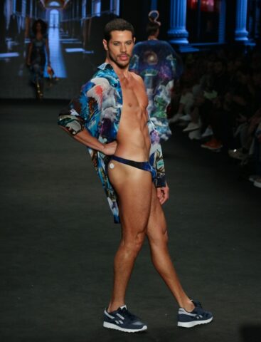 Logo de cara, Loreto entrou na passarela usando um sunga bem pequena e exibiu a parte de trás da vestimenta, um fio-dental. Depois, ele retornou com um look mais comportado, mas todo mundo queira mesmo comentar o primeiro figurino e o bumbum do ator.