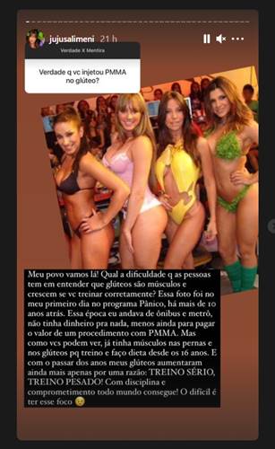 A pessoa anônima questionou se ela usa prótese e a influenciadora fitness ressaltou os anos de treino pesado na academia