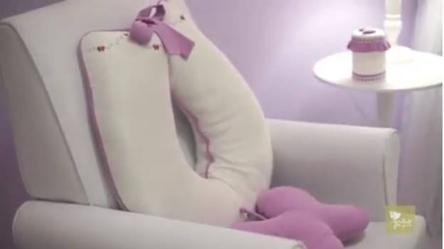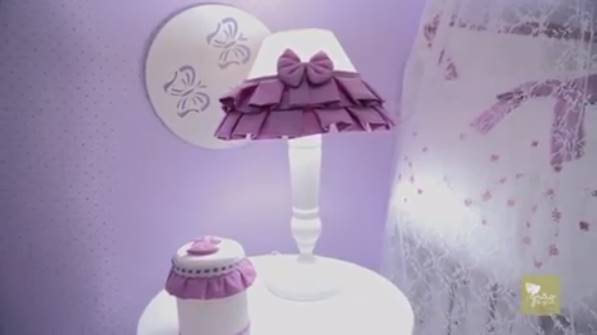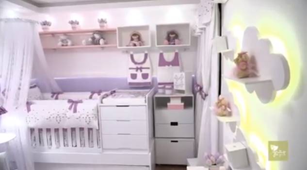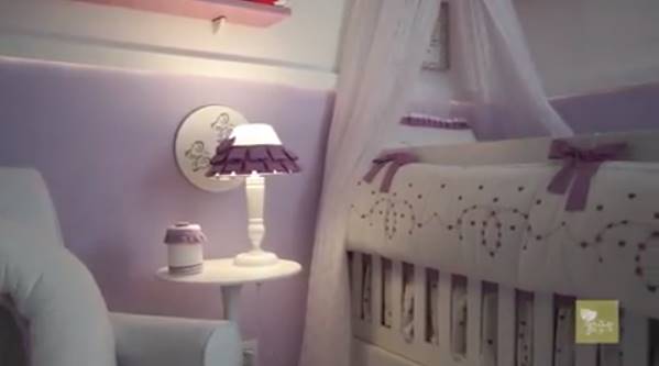 Em tons de roxo, o quartinho da bebê é composto por muitas bonecas de pano, laços e bichinhos de pelúcia. Uma fofura!