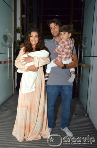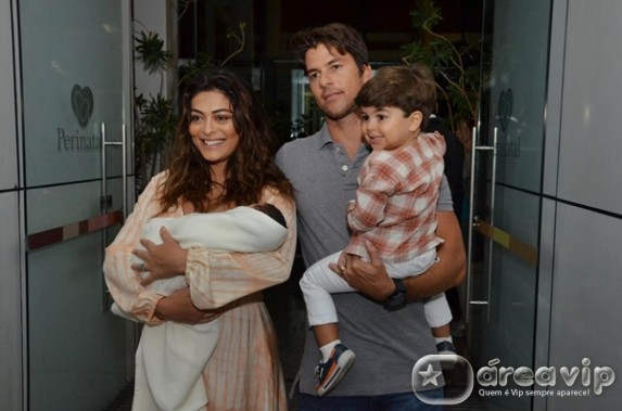 Juliana Paes recebeu alta na segunda-feira (22), da maternidade Perinatal da Barra da Tijuca, no Rio de Janeiro. A atriz deixou o local com o filho recém-nascido Antônio, junto do marido Carlos Eduardo Baptista e do filho Pedro.