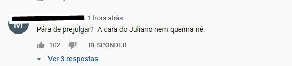 Quando Juliano falou sobre o papo de ter evoluído a ponto de não criticar outras pessoas, alguns internautas levaram como uma piada. “Para de pré-julgar? A cara do Juliano nem queimar”, escreveu um internauta ao assistir o vídeo. – Assista ao final da matéria.
