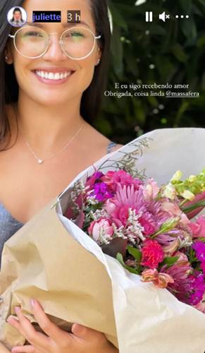 Na tarde desta sexta-feira (28), Juliette dividiu com os fãs mais um momento especial. A paraibana recebeu um carinho especial de Grazi Massafera, que a presenteou com um lindo buquê de flores.