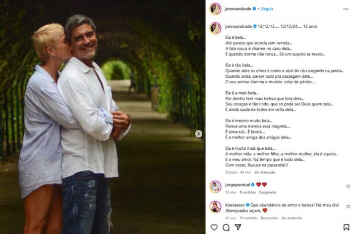 Junno Andrade compartilhou, nesta quinta-feira (12), registros inéditos ao lado de Xuxa Meneghel e celebrou os 12 anos de união com a eterna Rainha dos Baixinhos. Mostrando momentos especiais vividos ao lado da loira, ele se declarou, afirmando que é muito feliz ao seu lado.