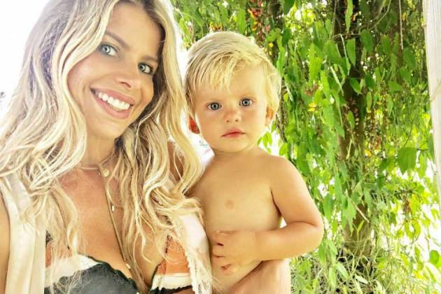 Karina Bacchi posta click fofo com Enrico na praia: ‘Alegria’