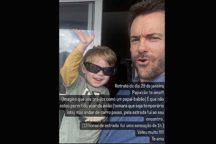 “Retrato do dia 28 de janeiro. Papai te ama! (Imagino que soe para vocês como um papai-babão) É que não estou permitido voar de avião (tomara que seja temporário isso), mas andar de carro posso; pela estrada, fui ao seu encontro. 13 horas de estrada foram uma sensação de 1 hora. Vale muito! Te amo”, declarou.