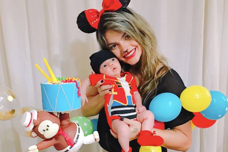 “1º Mês do meu Artur! Viva… É festinha….“, escreveu a loira no domingo (26).