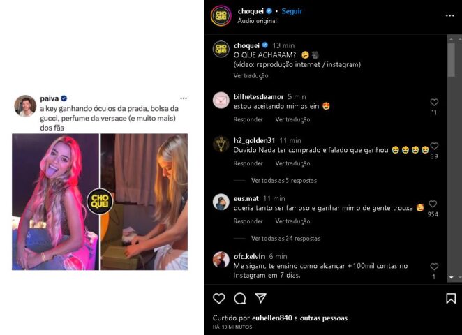 Entre algumas marcas famosas que a influencer recebeu presentes estão: Gucci, Prada e Versace. Sendo assim, vários internautas resolveram fazer os seguintes comentários a respeito da situação: ”queria tanto ser famoso e ganhar mimo de gente trouxa”. ”Fãs de reality?? Arrumem trabalho pra esse povo!!!”. ”Se brincar, foi a Bolsonara mesmo que comprou, e tá falando que foi presente dos fãs”. ”Vamos trabalhar queridos pra mimar o idolos de vcs(contém ironia)”.