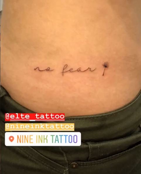 A artista decidiu tatuar uma frase: No fear (sem medo, em português). “Viu como ela é fininha? Nem doeu”, confessou.