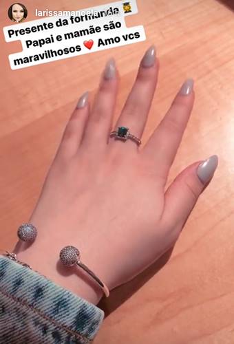 Larissa mostrou o anel que ganhou de presente dos pais. “Presente da formanda. Papai e Mamãe são maravilhosos. Amo vocês“, escreveu Lari.