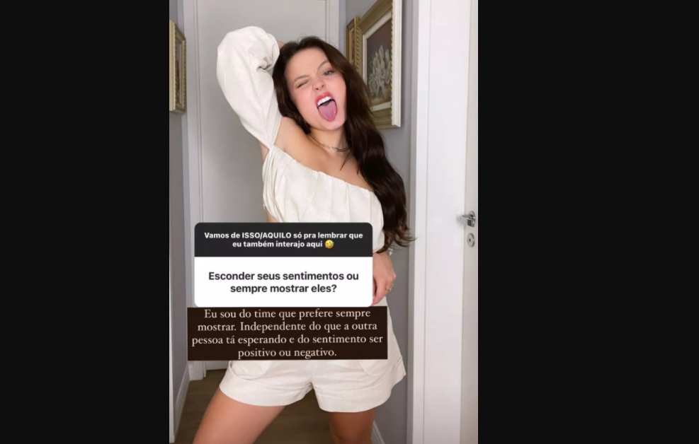 Dessa forma, Larissa Manoela por meio dos stories do Instagram, respondeu algumas perguntas enviadas por uma caixinha em seu perfil na rede social. No entanto, um fã da protagonista de ‘Além da Ilusão’, próxima trama inédita da faixa das 18h da TV Globo, quis saber se a atriz esconde ou sempre mostra seus sentimentos.