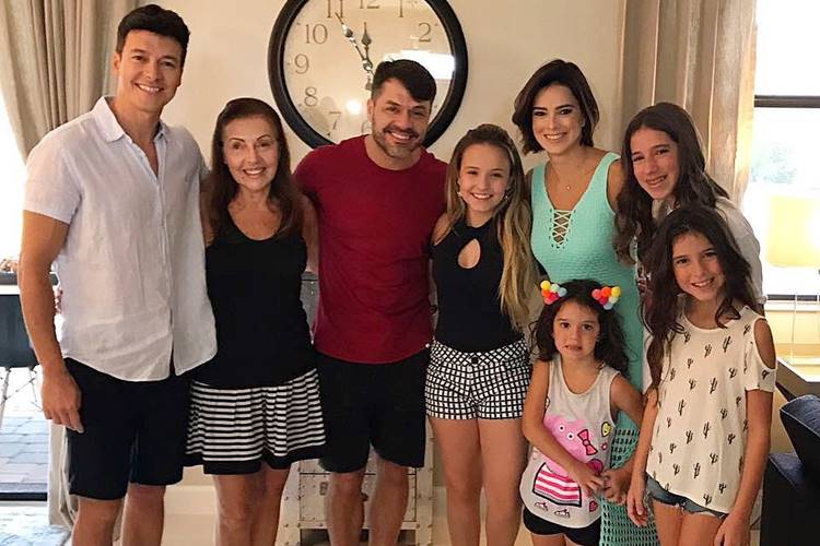 Da série ‘Somos Vizinhos e Nem Sabíamos’. Família linda e muito querida!! Grata por todo carinho“, escreveu a atriz ao publicar uma foto ao lado do apresentador, da mãe dele, Vera, da mulher, Vera Viel, do irmão, Danilo, e das filhas, Clara, de 11 anos, Maria, de 9, e Helena, de 4.