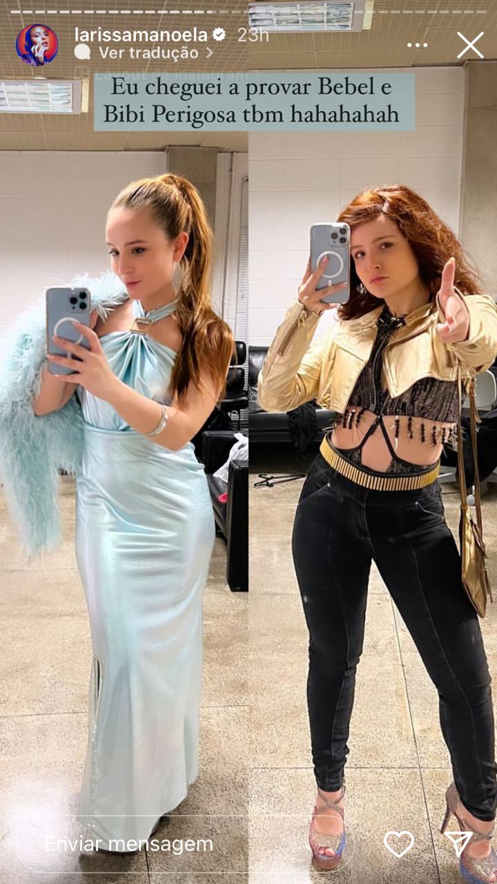 Através de suas redes sociais a atriz ainda compartilhou que também se caracterizou de Bibi Perigosa e Bebel. Já na legenda das fotos a atriz escreveu: “Do dia da prova dos personagens”.