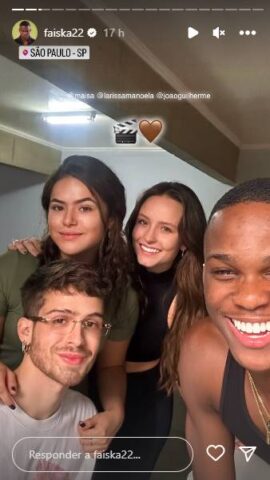 Dessa forma, o registro foi feito e publicado pelo ator Faiska Alves, que também se encontra no elenco da série da Netflix. No entanto, além de João Guilherme e Larissa Manoela, o registro ainda exibia Maisa Silva, protagonista da série, e o autor da foto citado acima.