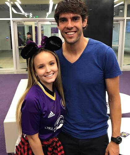 “Sair do estádio sem tirar uma foto com o camisa 10 do Orlando City não pode neh?? Prazer demais te conhecer Kaká“, escreveu Larissa Manoela, que em seguida publicou: “Aquela felicidade de quem agora tem uma camisa do time autografada pelo Kaká“.