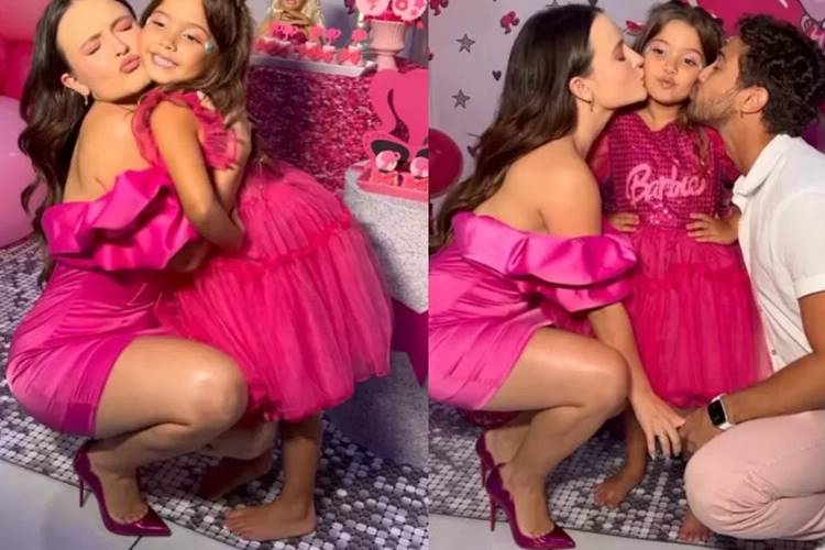 Neste sábado (16), a atriz voltou a usar a peça em uma festa de aniversário da afilhada. No click divulgado por Larissa Manoela, ela ainda aparece junto com André Frambach enquanto prestigia a afilhada.