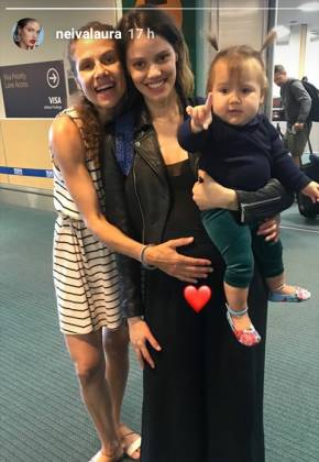 Na noite da última sexta feira, ela surgiu ao lado da mãe Michele Mattar. A artista estava no aeroporto e publicou uma foto linda mostrando o barrigão de grávida.