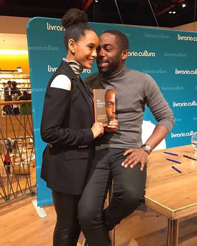 Lázaro lançou a autobiografia “Na Minha Pele” em São Paulo, na noite desta quinta-feira (6). No Instagram, o ator compartilhou um registro do evento na companhia da esposa.