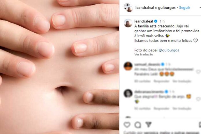 “A família está crescendo! Juju vai ganhar um irmãozinho e foi promovida à irmã mais velha. Estamos todos bem e muito felizes”, escreveu. Anteriormente, a atriz havia publicado um post no Dia Nacional da Adoção falando sobre a importância do gesto.