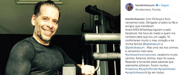 “Com fé, força e foco vencemos tudo. Obrigado a todos os fãs e amigos que mandaram direct, mensagens, ligaram e pelo Facebook. Na hora do medo e quem me conhece sabe que sou um c****. Vocês confortaram muito o meu coração e da minha família, Kaká Pietra. Mais uma vez nos unimos e vencemos mais essa. Estamos ótimos. Aqui foi suave. Rezando e torcendo pelas pessoas que realmente sofreram. Foram muitos“, escreveu ele na legenda do post.