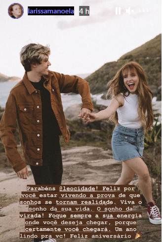 Em seu perfil no Instagram, Larissa Manoela usou o story para parabenizar o ex-namorado. Ela publicou uma foto do casal. “Parabéns Leo Cidade! Feliz por você estar vivendo a prova de que sonhos se tornam realidade. Viva o sonho da sua vida”, escreveu a atriz.