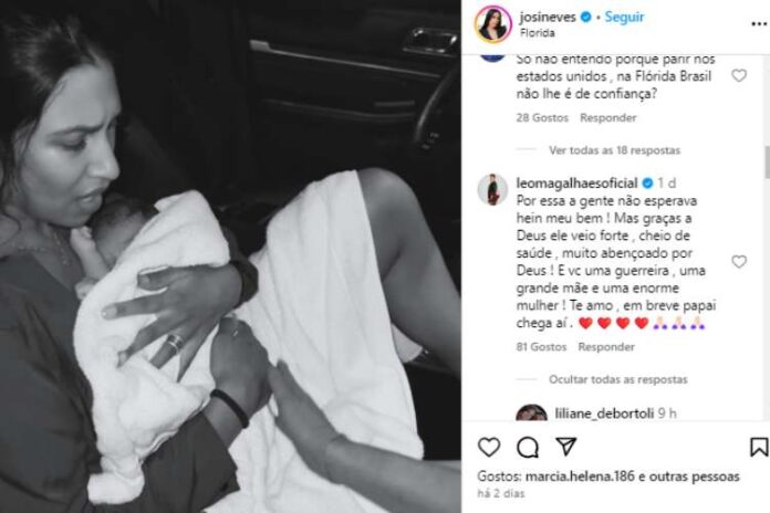 “Por essa a gente não esperava, hein, meu bem! Mas graças a Deus ele veio forte, cheio de saúde, muito abençoado por Deus”, expressou Léo Magalhães nos comentários do desabafo da esposa. O artista também rasgou elogios à ela. “E você uma guerreira , uma grande mãe e uma enorme mulher ! Te amo , em breve papai chega aí”, finalizou o cantor.