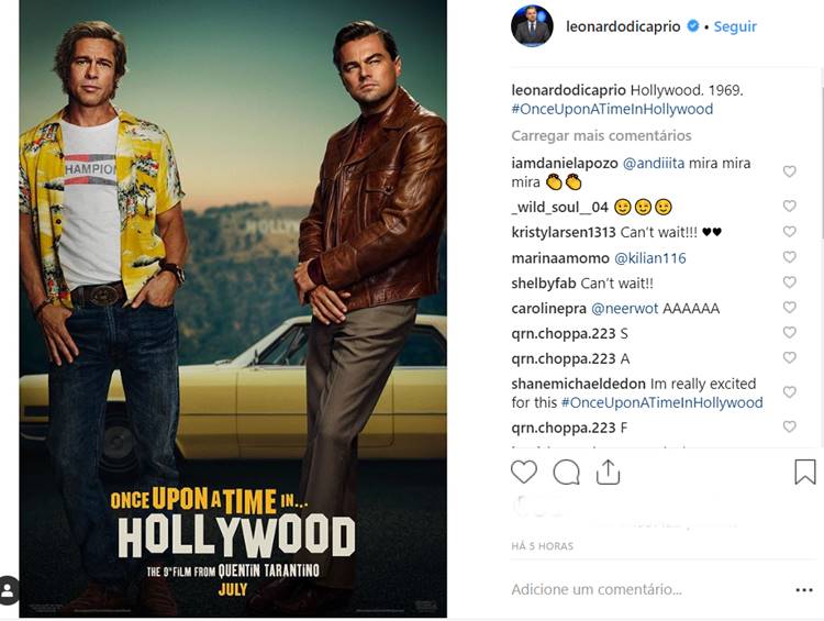 O filme é o novo projeto do diretor Quentin Tarantino e sua postagem antecipa o lançamento do trailer, esperado para essa semana. Once Upon a Time in Hollywood é o nono filme do consagrado diretor e contará com os atores Leonardo DiCaprio, Brad Pitt e Margot Robbie, seguidos pelos brilhantes Al Pacino, Burt Reunolds, Tim Roth, Kurt Russel, Michael Madsen, Dakota Fanning e Damian Lewis. Depois de trabalhar em Justified, Damon Herriman estará no filme de Tarantino e interpretará Charles Manson.