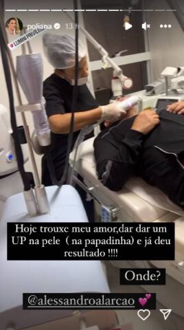 Em seguida, Poliana divulgou o local aonde Léo passou pelo tratamento de pele, mostrando ainda mais o resultado do procedimento nas suas redes sociais.