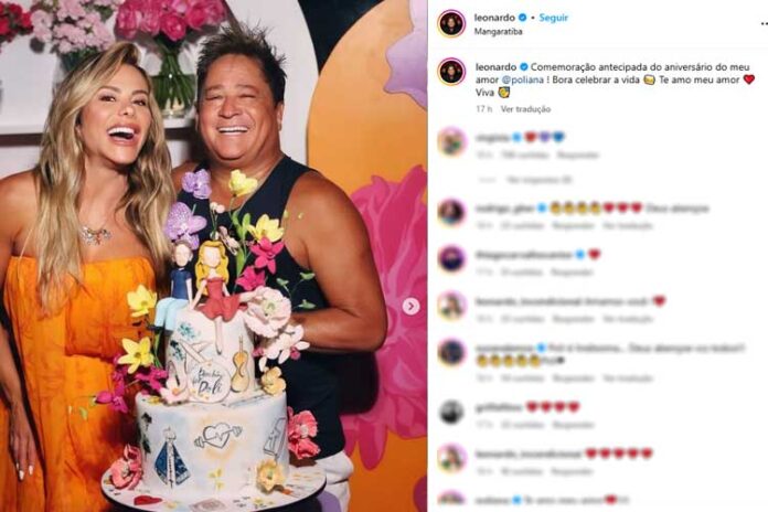 Na legenda, ele celebrou o aniversário antecipado da amada, destacando a importância de se celebrar a vida. “Comemoração antecipada do aniversário do meu amor @poliana ! Bora celebrar a vida. Te amo meu amor ! Viva!”, desejou o cantor.