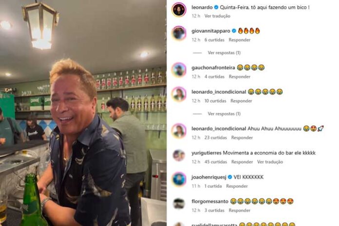 Nos comentários, o público se divertiu. “Movimenta a economia do bar”, brincou um fã. “Que maravilha, queria a localização desse bar”, disse outro. “Leo, dono do bar…ele quebra o bar. Bebe o estoque”, brincou mais um internauta.