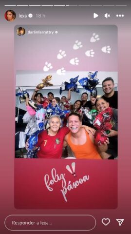 Sendo assim, ontem, 9 de abril, a cantora compartilhou uma imagem com a família reunida em dia de Páscoa e não estava com Guimê no registro. Ela republicou uma imagem com a mãe Darlin Ferrattry e outro parentes e escreveu a seguinte legenda: ”Feliz Páscoa”. Posteriormente, a funkeira ainda apareceu dançando com um amigo. Veja o post abaixo!