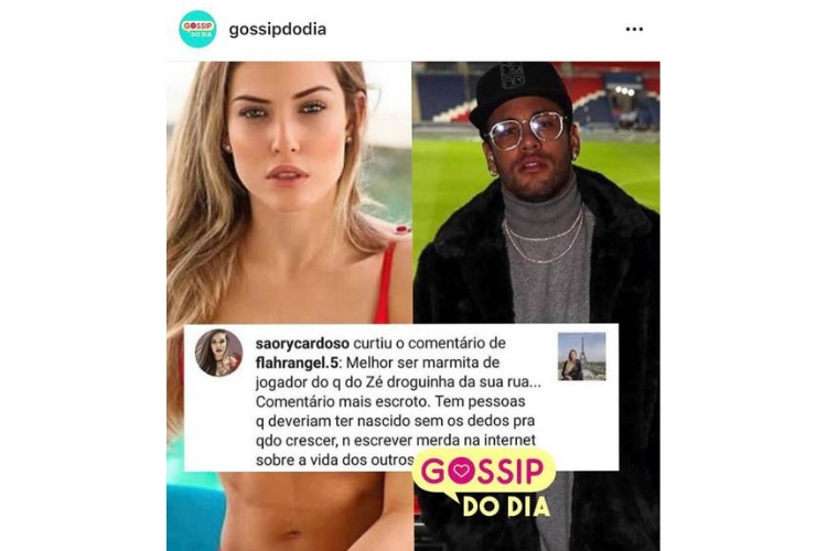 “Melhor ser marmita de jogador do que do Zé droguinha da sua rua. Comentário mais escroto. Tem pessoas que deveriam ter nascido sem os dedos para quando crescer, não escrever merda na internet sobre a vida dos outros”, dizia o comentário curtido por Saory.