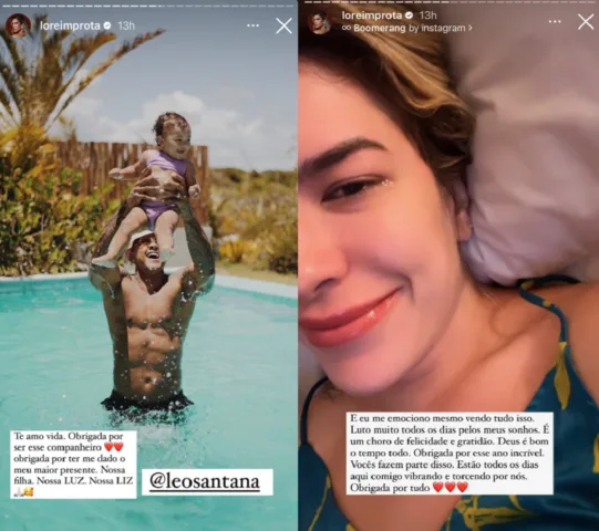 Lore Improta passou alguns dias descansando com a família na Praia do Forte, Bahia, e usou os Stories do Instagram para fazer uma revelação envolvendo o marido Léo Santana e a filha Liz. Ela disse que sempre sonhou em constituir uma família e chorou a derramar lágrimas compartilhando isso.