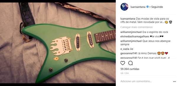 Oi? Luan Santana surpreendeu seus seguidores do Instagram ao afirmar que vai se dedicar “ao estilo que realmente ama: o heavy metal”. Nesta segunda-feira (25), ele publicou uma foto no Instagram segurando uma guitarra e contou a novidade.