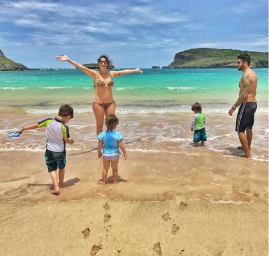 “Tudo que eu sonhei um dia, taqui! Agora! É isso! Família, saúde, natureza, harmonia, gratidão, sol, amor, cumplicidade, escolhas, Noronha. Só isso!”, disse Luana na legenda de uma foto com a família.
