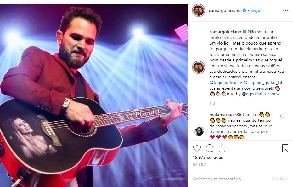 Luciano também disse aos seguidores, que desde que passou a usar os violões no show, ele passou a homenagear a amada. Todos os instrumentos que ele usa tem o rosto de Flávia estampado.