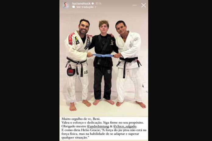 “Muito orgulho de você, Beni. Valeu o esforço e a dedicação. Siga firme em seu propósito. Obrigado, mestre André Bitang e Chico Salgado. E como diria Hélio Gracie: ‘A força do jiu-jitsu não está na força física. Está na habilidade de se adaptar e superar qualquer situação’”, disse Huck na legenda.