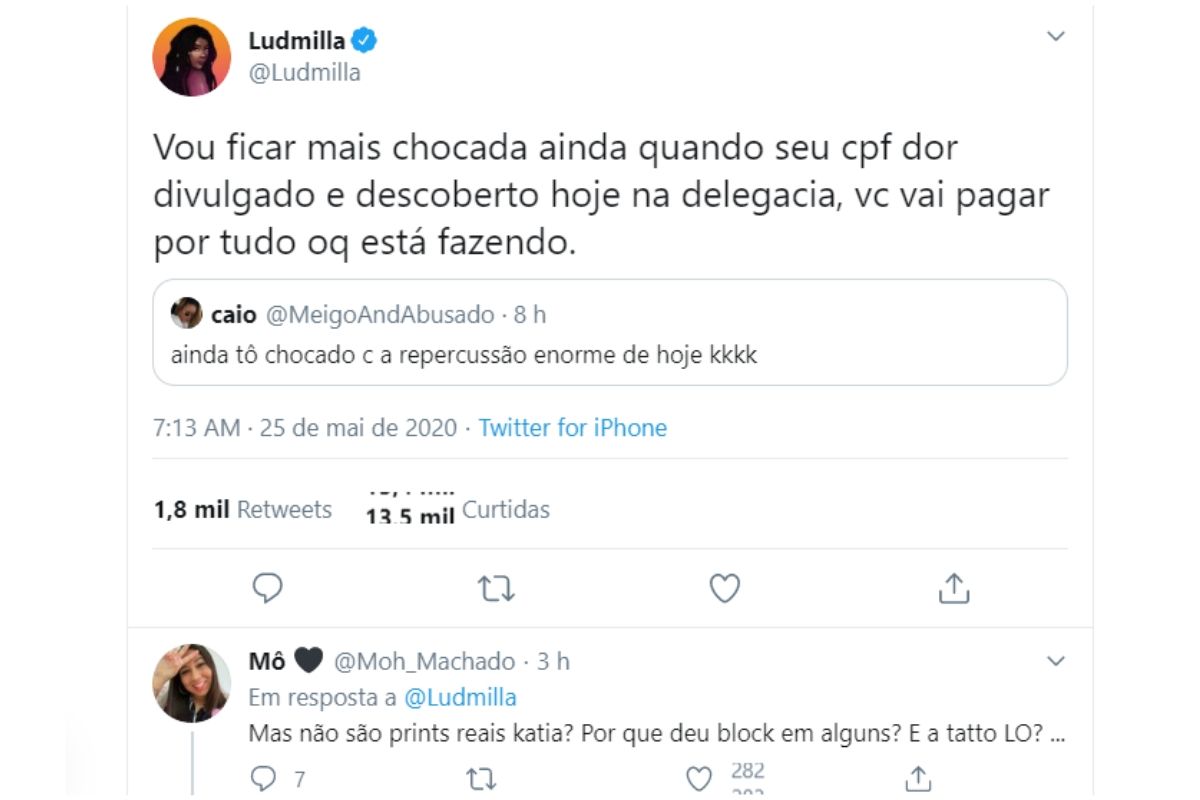 + Ludmilla ameaça denúncia contra internauta em meio a polêmica sobre traição