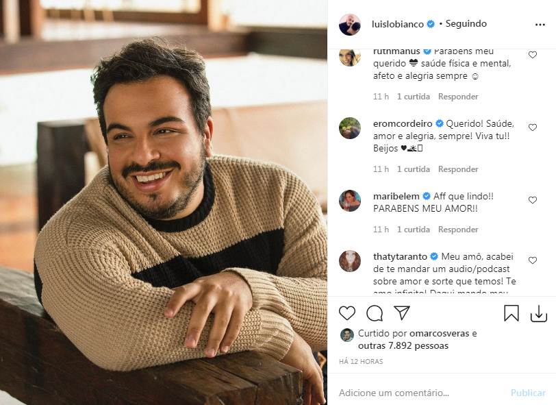 Os amigos do artista logo desejaram felicidades. “Meu amigo! Feliz Aniversário. Tudo de mais bonito pra você! Seja feliz. Saudade ❤”, escreveu Marcos Veras. “Feliz aniversário, caracooooo muita alegria paz e amor ❤”, disse Kaysar Dadour. “Querido! Saúde, amor e alegria, sempre! Viva tu!! Beijos ♥”, desejou o ator Erom Cordeiro.