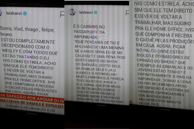 Luis Bacci resolveu falar sobre uma situação que aconteceu no último final de semana, quando o DJ Ivis, subiu ao palco em show do Wesley Safadão. Para quem não se lembra o Dj Ivis, foi preso após vídeo dele ser publicado, onde ele agredia a esposa.
