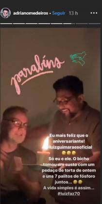 Em seus stories, Adriano publicou e compartilhou com seguidores um momento muito especial ao seu amado. O empresário surgiu fazendo uma festinha simples mas com todo amor ao aniversariante, com uma torta na mão, ele surpreendeu o marido, que feliz com a homenagem só agradeceu.