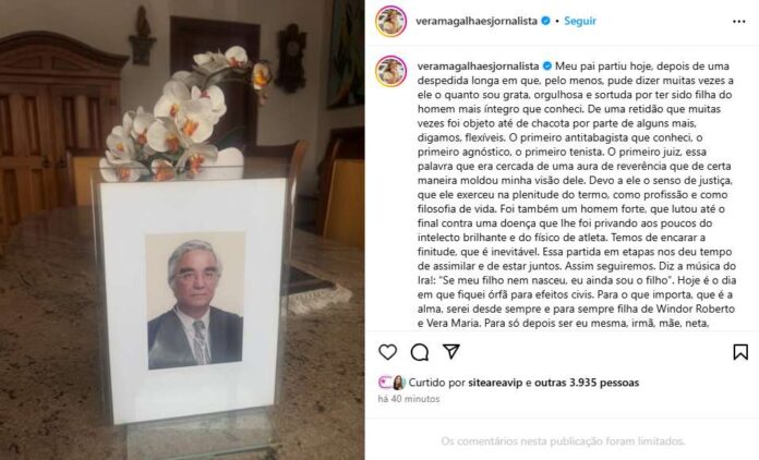 A apresentadora Vera Magalhães, que comanda o programa Roda Viva, na TV Cultura, acabou usando o seu perfil no Instagram para comunicar o falecimento do seu pai, Windor Roberto.