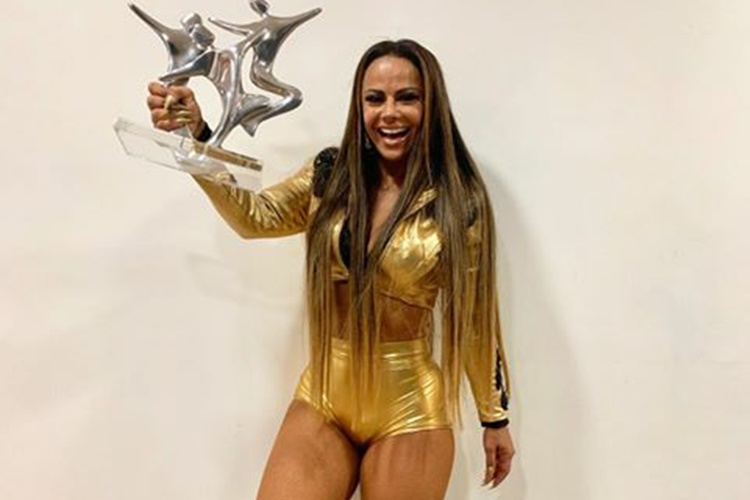 Madrinha do conjunto Imperadores da Dança, no programa “Domingão do Faustão”, Viviane Araújo levou o troféu da competição e arrancou elogios do público através da internet.