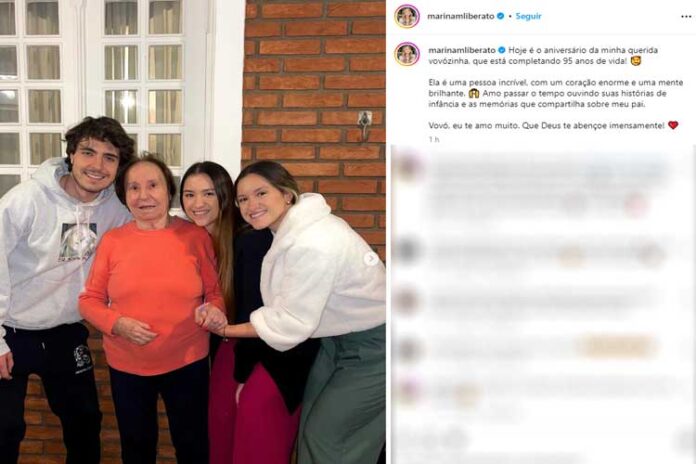 Marina Liberato também se declarou, afirmando que Maria é uma pessoa muito especial, com um grande coração e uma mente brilhante. “Hoje é o aniversário da minha querida vovózinha, que está completando 95 anos de vida! Ela é uma pessoa incrível, com um coração enorme e uma mente brilhante. Amo passar o tempo ouvindo suas histórias de infância e as memórias que compartilha sobre meu pai. Vovó, eu te amo muito. Que Deus te abençoe imensamente!”, desejou.