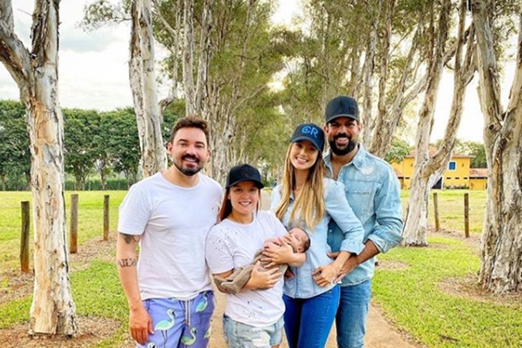 “Família reunida”, escreveu a sertaneja que parecia toda derretida pelo recém-nascido.