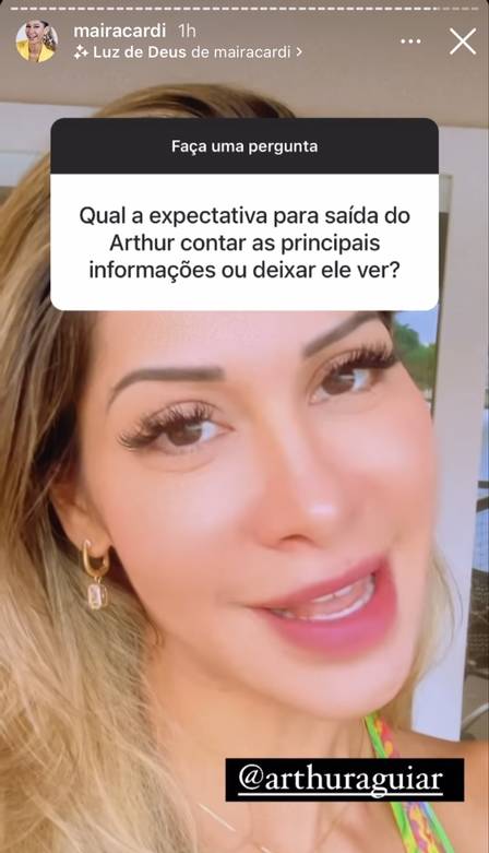Dessa forma, por meio dos storeis no Instagram, Maíra Cardi respondeu algumas curiosidades de seus seguidores e confessou que aguarda Arthur Aguiar com muito ‘tesão’. Exatamente isso que você leu! A influenciadora revelou aos seguidores que assim que o maridão voltar para casa, ela irá fazer amor, de manhã, de tarde e noite, e que só depois falará com ele sobre o BBB22.